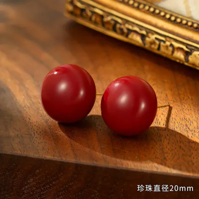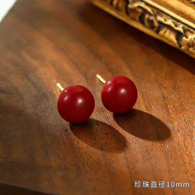 Lustrous Simulated Pearls: The focal point is a pair of high-quality, flawlessly smooth simulated pearls. They feature a deep, consistent wine-red color and a brilliant luster that beautifully catches the light, offering the luxurious appearance of genuine pearls at an accessible price point.