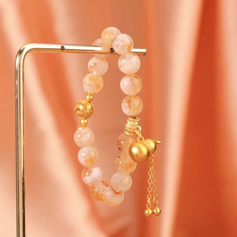 11mm Natural Citrine Tigereye Jinba Zircon Gourd Crystal Bracelet