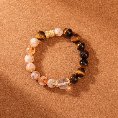Materials: Natural Citrine, Natural Tiger's Eye, Zircon, Durable Elastic Cord