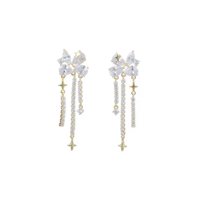 Elegant Zircon Tassel Earrings with S925 Silver Posts