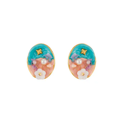 Monet Garden Baroque Natural Pearl Oil Painting Ear Studs