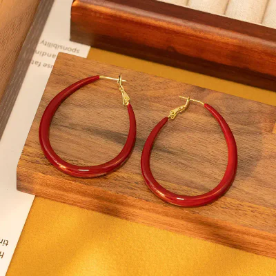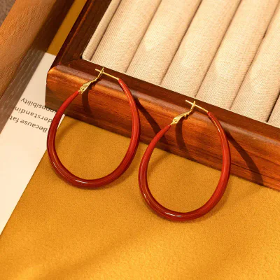 Elevate your jewelry collection with our premium Wine Red Oval Hoop Earrings, a sophisticated accessory designed for the discerning modern consumer. These earrings capture a perfect balance between vintage charm and contemporary style, making them a must-have for the autumn and winter seasons. The elongated oval silhouette offers a graceful alternative to traditional round hoops, providing a flattering contour that complements any face shape. The rich, deep wine-red hue is achieved through a meticulous enamel process, resulting in a flawless, high-gloss finish that exudes luxury and refinement. These earrings are designed not just as an accessory, but as a statement piece for retailers catering to clients who appreciate unique design and superior quality.