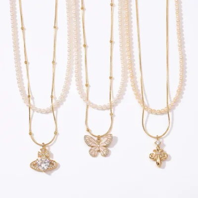 Elevate your jewelry collection with this exquisitely designed Copper Zircon Saturn Double Layer Pendant Necklace, a premier choice for retailers seeking high-quality, trend-forward fashion accessories. Inspired by contemporary Korean design principles, this piece masterfully combines celestial charm with modern elegance. The dual-chain construction creates an effortlessly chic layered look, while the central Saturn pendant, meticulously inlaid with brilliant zircon stones, serves as a captivating focal point. This clavicle chain is designed to sit gracefully along the neckline, making it a versatile and highly marketable accessory for a discerning customer base. Its sophisticated aesthetic offers the appeal of fine jewelry at an accessible price point, perfect for B2B clients targeting the modern consumer.