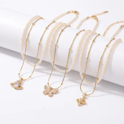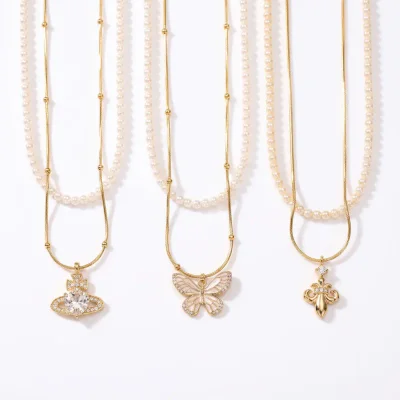 This necklace is crafted from a high-quality copper base, chosen for its durability and excellent plating properties, ensuring a lasting, lustrous finish. The pendant and accents feature premium-grade cubic zirconia, precision-set to maximize sparkle and create a diamond-like effect. The treatment process involves expert inlay techniques, securing each stone for a flawless presentation. The piece features two distinct chains that are joined at the clasp, creating a balanced and comfortable layered design. With an adjustable perimeter of 51cm to 60cm, it offers a customizable fit for various necklines and preferences, secured by a reliable clasp. Sourced from Yiwu, a global hub for accessory manufacturing, this necklace represents a fusion of skilled craftsmanship and efficient production.