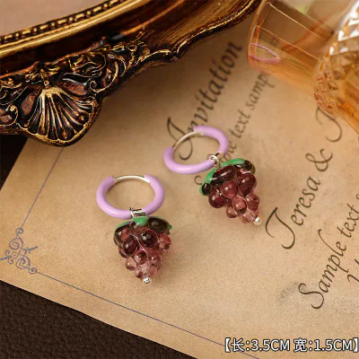 Exquisite Purple Crystal Grape Earrings: A Touch of Pastoral Elegance