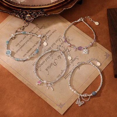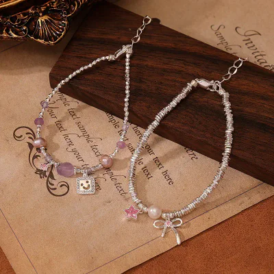 Accent Details: The design incorporates a delicate heart-shaped charm and is available in two distinct color variations: a serene blue crystal with silver-tone accents and a romantic pink-purple baroque pearl option.