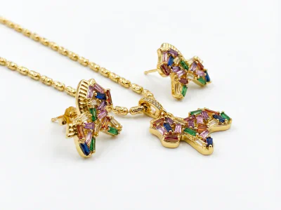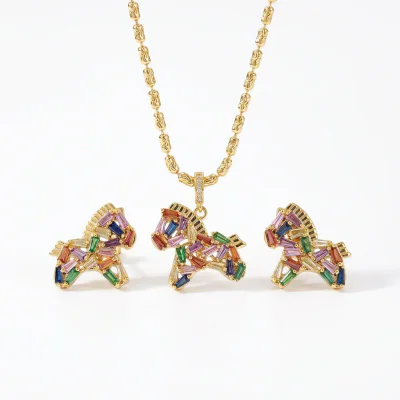Elevate your inventory with our exquisite Rainbow Crystal Horse Necklace and Earring Set, a masterfully crafted collection designed for the modern, style-conscious consumer. This set captures the essence of the vibrant 'dopamine dressing' trend, combining a playful equestrian motif with a sophisticated, light luxury aesthetic. The centerpiece of both the necklace and the matching earrings is a gracefully designed horse silhouette, meticulously adorned with a spectrum of colorful, high-quality cubic zirconia crystals. This jewelry set is not merely an accessory; it's a statement of joy and elegance, designed to be a top-performing item in fashion boutiques, online stores, and specialty gift shops. The necklace features an adjustable beaded chain, ensuring a perfect fit for a variety of necklines, making it a versatile choice for any collection.