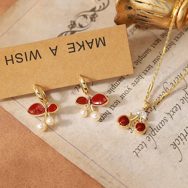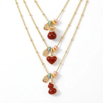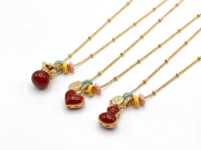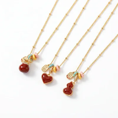 This necklace is built on a durable and high-quality copper base, chosen for its excellent workability and ability to hold intricate details. The piece undergoes a meticulous real gold electroplating process, receiving a generous layer of 18K gold. This premium plating not only imparts a brilliant, luxurious luster but also provides enhanced durability and resistance to tarnishing, ensuring long-lasting beauty. The striking red surface is achieved through a precise 'dripping oil' technique, an application of high-grade epoxy enamel that results in a smooth, flawless, and richly colored finish. Every component, from the clasp to the chain links, is carefully assembled to meet high standards of quality for the B2B market.
