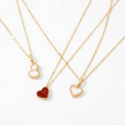 Introducing a masterpiece of contemporary elegance: the French-Inspired Wine Red Agate Heart Pendant Necklace. This exquisite clavicle chain is designed for the modern woman who appreciates a blend of classic romance and sophisticated style. The centerpiece is a stunning heart-shaped pendant, meticulously crafted with a deep, wine-red agate inlay and a glossy dripping oil (enamel) finish. Set against a lustrous, real gold-plated copper chain, this necklace exudes a sense of light luxury and high-end appeal, making it a must-have accessory for any curated jewelry collection. Its timeless design ensures it remains a staple piece, perfect for enhancing both professional attire and evening wear.