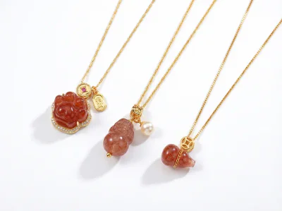 Elevate your jewelry collection with our exquisite Natural Pink Strawberry Quartz Pixiu Pendant Necklace, a premier piece designed for the discerning modern consumer. This necklace embodies a 'light luxury' aesthetic, seamlessly blending traditional symbolism with contemporary fashion. The centerpiece is a meticulously carved Pixiu, a mythical creature revered for attracting wealth and good fortune, crafted from genuine Pink Strawberry Quartz. Suspended from a classic, durable chain with a high-quality real gold plated finish, this piece measures an adjustable 41-50cm, making it a versatile clavicle necklace suitable for a variety of necklines and styles. Its sophisticated design is perfect for the 'fashionable commuting' style classification, appealing to professionals and style-conscious individuals seeking accessories that are both meaningful and chic. Sourced from the renowned manufacturing hub of Yiwu, this necklace is a testament to quality craftsmanship and on-trend design, poised for success in the Winter 2025 season and beyond.