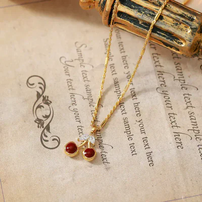 Quality is paramount in our production process. This necklace is constructed with a durable copper base, chosen for its excellent workability and ability to hold intricate details. The entire piece undergoes a genuine gold electroplating process, which imparts a rich, lustrous finish that is resistant to tarnishing and provides a long-lasting shine. The centerpiece of the design, the charming cherry pendant, is brought to life with precision micro-inlaying techniques. This meticulous process involves setting tiny, high-grade crystals or zircons closely together, creating a brilliant, sparkling effect that mimics the look of fine jewelry. The result is a product with a high-perceived value that will delight your customers.