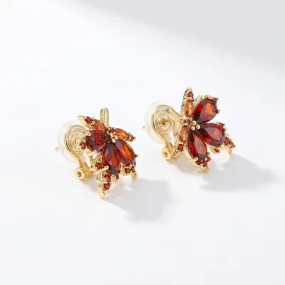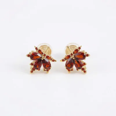 Elegant New Chinese Style Red Maple Leaf Earrings: Studs & Clips