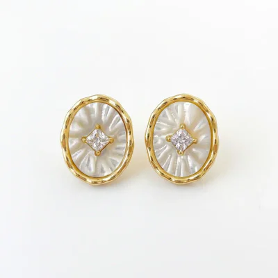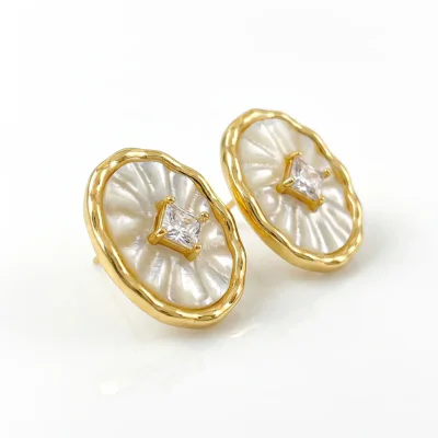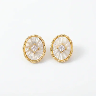 Introducing a sophisticated addition to any curated jewelry collection: the French Retro Natural Mother-of-Pearl Stud Earrings. These earrings masterfully blend timeless elegance with a light luxury aesthetic, making them a highly desirable item for the modern consumer. The design features a captivating oval-cut piece of natural mother-of-pearl, renowned for its iridescent luster that shifts with the light. This centerpiece is framed by meticulously set, high-grade cubic zirconia stones, adding a brilliant sparkle that elevates the overall design. The use of symbolic motifs like butterflies and lucky clovers, combined with the natural beauty of the shell, creates a piece that is not only beautiful but also rich in meaning. Crafted for the discerning woman, these earrings are perfect for both professional and casual settings, embodying the 'fashion commuting' style that is currently in high demand.