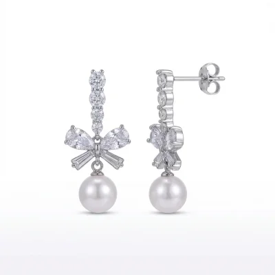 Bowknot Zircon Pearl 925 Sterling Silver Stud Earrings