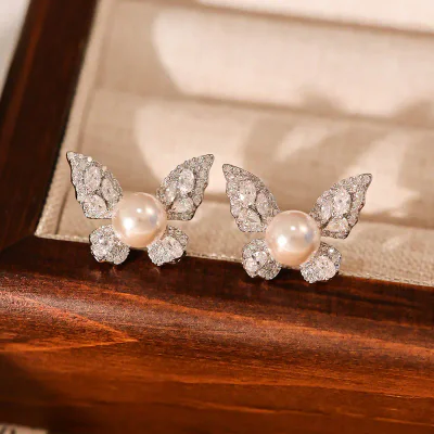 Our commitment to quality is evident in every detail of this necklace set. The foundation of the piece is a durable, high-quality copper base, chosen for its strength and excellent plating properties. The necklace undergoes a meticulous electroplating process, resulting in a rich, long-lasting finish that resists tarnishing and maintains its brilliance. The centerpiece butterfly pendant is a work of art, featuring a mixed gemstone inlay of precisely cut, sparkling crystals that catch the light from every angle. The chain is composed of high-grade simulated pearls, selected for their uniform shape, deep luster, and classic appeal, providing the luxurious feel of genuine pearls at an accessible price point.
