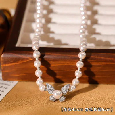 This stunning necklace features a delicate butterfly pendant, intricately designed and set against a lustrous pearl chain. The unique 'Manta Rose Violet' color palette offers a subtle yet captivating hue that stands out from standard gold and silver tones. The design strikes a perfect balance between whimsical charm and professional elegance, making it a versatile accessory for a wide range of occasions. With a comfortable clavicle length of 41-50cm, it is designed to beautifully accentuate the neckline, appealing to a broad customer base.