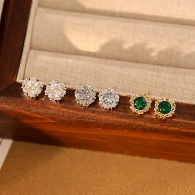 Elegant Color Zircon & 925 Silver Post Stud Earrings - Wholesale