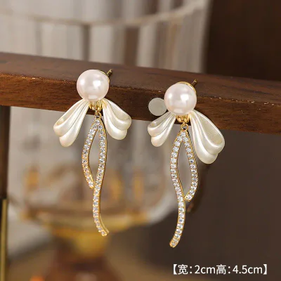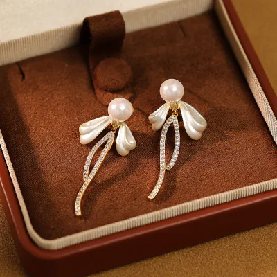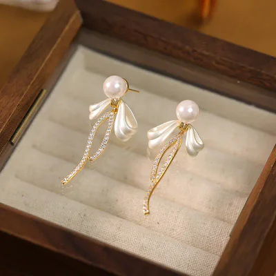 Elegant French-Style Pearl & Zircon Bow Tassel Earrings - 2025 Collection