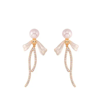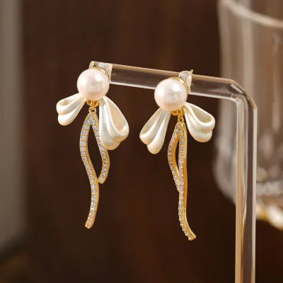 Elevate your inventory with these exquisitely designed French-style bow tassel earrings, a premier addition to our Spring 2025 collection. Crafted for the discerning woman, these earrings embody a sophisticated blend of classic elegance and contemporary light luxury. The design features a gracefully sculpted bowknot, meticulously inlaid with brilliant-cut cubic zirconia, creating a captivating sparkle. Suspended below are delicate tassels anchored by lustrous, high-quality simulated pearls, adding movement and a touch of timeless grace. These earrings are the perfect accessory for the modern professional, transitioning seamlessly from office wear to evening elegance.