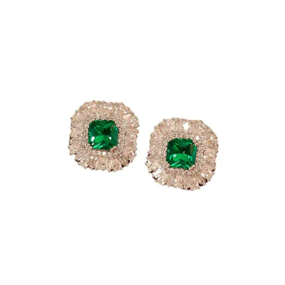 Emerald Green Zircon Geometric Stud Earrings with 925 Silver Posts
