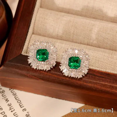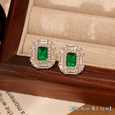 Quality is paramount in the construction of these exquisite earrings. Each piece is centered around a premium-grade zircon, selected for its superior clarity, color saturation, and dazzling sparkle that rivals genuine emeralds. The stones are meticulously set using a precision diamond-setting technique, securing them firmly within a durable, polished metal frame that enhances their geometric silhouette. To ensure comfort and appeal to a wider market, the ear posts are crafted from genuine 925 Sterling Silver. This hypoallergenic material is ideal for customers with sensitive skin, reducing the risk of irritation and adding a significant quality hallmark that justifies a higher retail price.