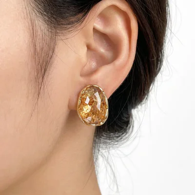 Quality is at the forefront of this design. The primary body of the earring is crafted from high-quality, durable copper, selected for its excellent strength and ability to hold a lustrous, long-lasting finish. The centerpiece is a precision-cut, high-brilliance orange crystal, faceted to capture and reflect light beautifully. The clip-on version features an innovative 'mosquito coil' spiral clip, engineered for all-day comfort without pinching, making it a perfect solution for customers without pierced ears. For the stud version, we prioritize wearer comfort and safety by using hypoallergenic S925 Sterling Silver for the ear posts, catering to those with sensitive skin. Each piece undergoes a meticulous polishing and setting process to ensure a flawless finish and secure crystal placement.