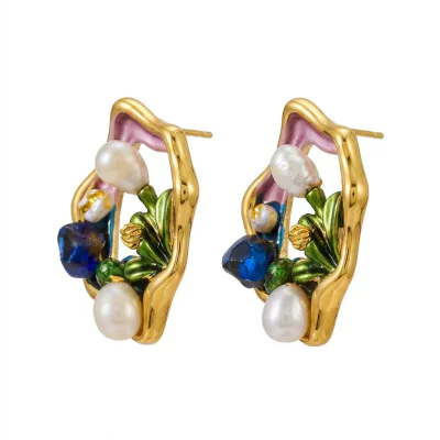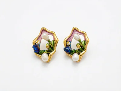 The 'oil painting' effect is achieved through a detailed enameling process on a durable alloy base, creating a rich, textured appearance with depth and vibrant color that mimics an artist's brushstrokes. This artistic craftsmanship sets the collection apart from mass-produced alternatives. For wearer comfort and quality assurance, the ear posts are made from genuine S925 sterling silver, a hypoallergenic material ideal for sensitive skin. This commitment to quality materials ensures longevity and customer satisfaction.