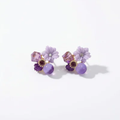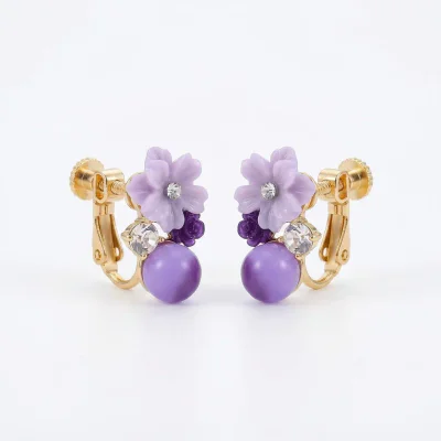 Introducing a timeless addition to any discerning jewelry collection, the AE9607X14 floral ear clips. Launched for the Spring 2024 season, these earrings capture the essence of artistic retro elegance. Designed for the modern woman who appreciates vintage aesthetics, each piece features a delicate floral motif centered around a captivating, deep purple crystal. This design is thoughtfully offered in two distinct styles to maximize market reach: a comfortable, non-pierced 'mosquito coil' ear clip and a classic ear stud with a hypoallergenic S925 sterling silver needle. This dual offering ensures you can cater to all customer preferences, making it a versatile and highly sellable inventory choice for retailers targeting the sophisticated European market and beyond.