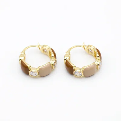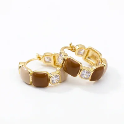 Elegant Coffee Zircon C-Hoop Earrings with 925 Silver Pin