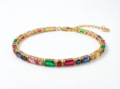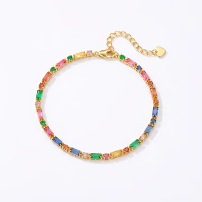 Introducing our Autumn 2024 collection highlight, the Geometric Colorful Zircon Jewelry Set, available as a coordinated necklace and bracelet. This collection captures the essence of contemporary fashion with its bold, expressive design and vibrant color palette. Crafted for the modern consumer, this set features a striking arrangement of square-cut, multi-colored zircon stones, reminiscent of sugar cubes, set along a durable chain. The necklace is designed as a chic clavicle piece, with an adjustable length of 41-50cm, making it a versatile addition to any jewelry offering. This set is perfect for retailers looking to capitalize on the trend for colorful, mood-boosting accessories and geometric motifs.
