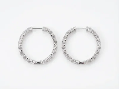 Our commitment to quality is evident in every detail of these exquisite earrings. The core of each hoop is constructed from a high-quality, durable copper base, ensuring longevity and structural integrity. This base is then expertly plated with a thick layer of white gold, providing a brilliant, tarnish-resistant finish that mimics the look of platinum or rhodium.