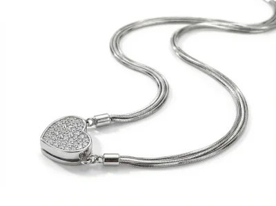 Clasp: Innovative two-piece magnetic heart clasp that functions as the central pendant.
