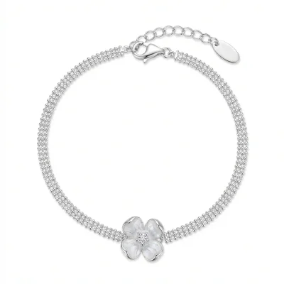 Introducing a premier piece from our Summer 2025 collection, the Gold-Plated Copper Zircon Cherry Blossom Bracelet. This accessory captures the essence of sophisticated, light luxury design, making it an essential addition to any fashion-forward jewelry inventory. Meticulously crafted, this bracelet features a delicate chain adorned with a beautifully detailed cherry blossom motif, a timeless symbol of grace and renewal. Each petal is precisely set with brilliant, high-grade cubic zirconia stones that catch the light with every movement, offering the allure of fine diamonds at an accessible price point. The design is perfectly balanced, making it suitable for both professional environments and elegant evening wear, aligning with the 'fashionable commuting' style category.