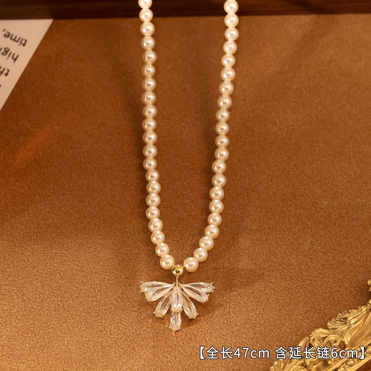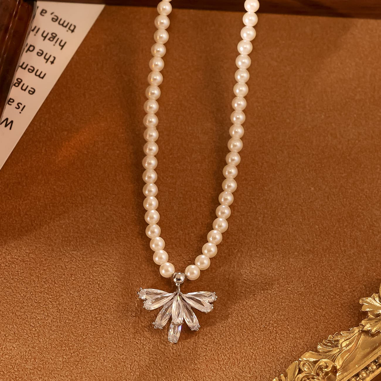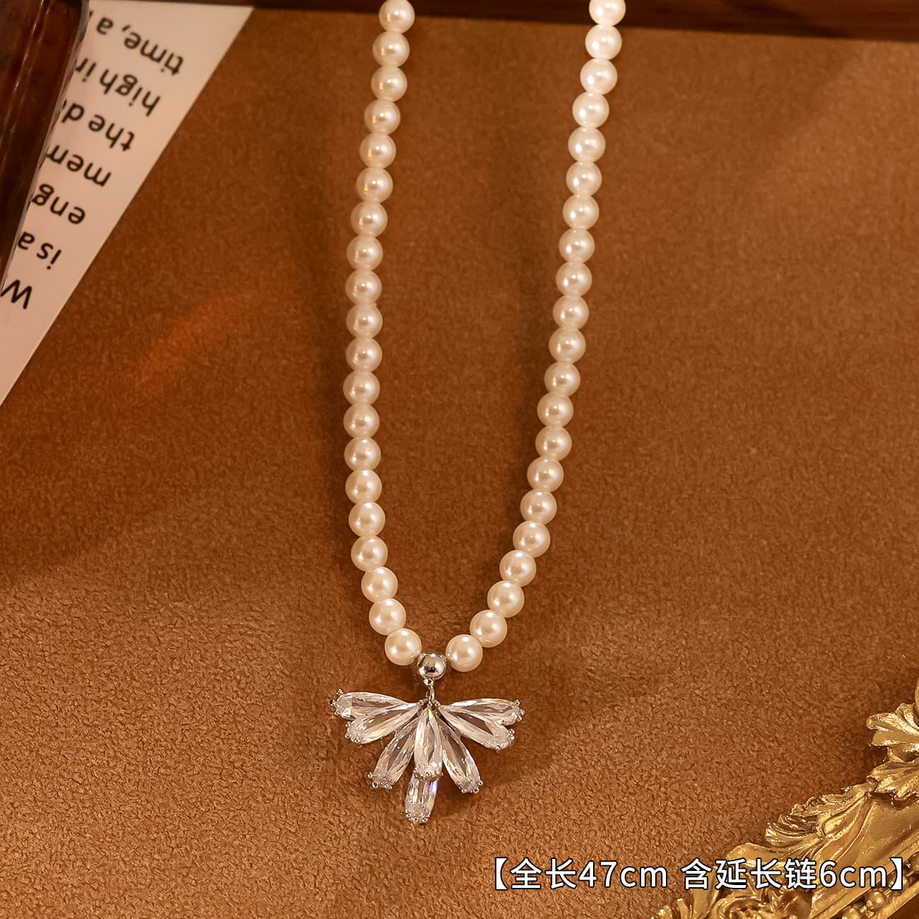 Introduce your customers to the exquisite French Glass Pearl Zircon Petal Necklace, a timeless piece designed to captivate. This
