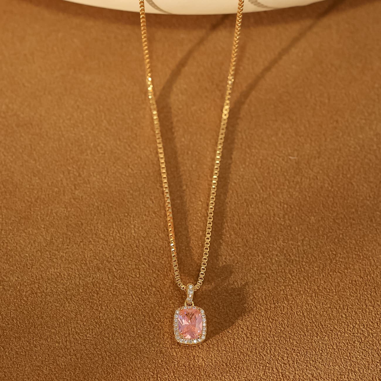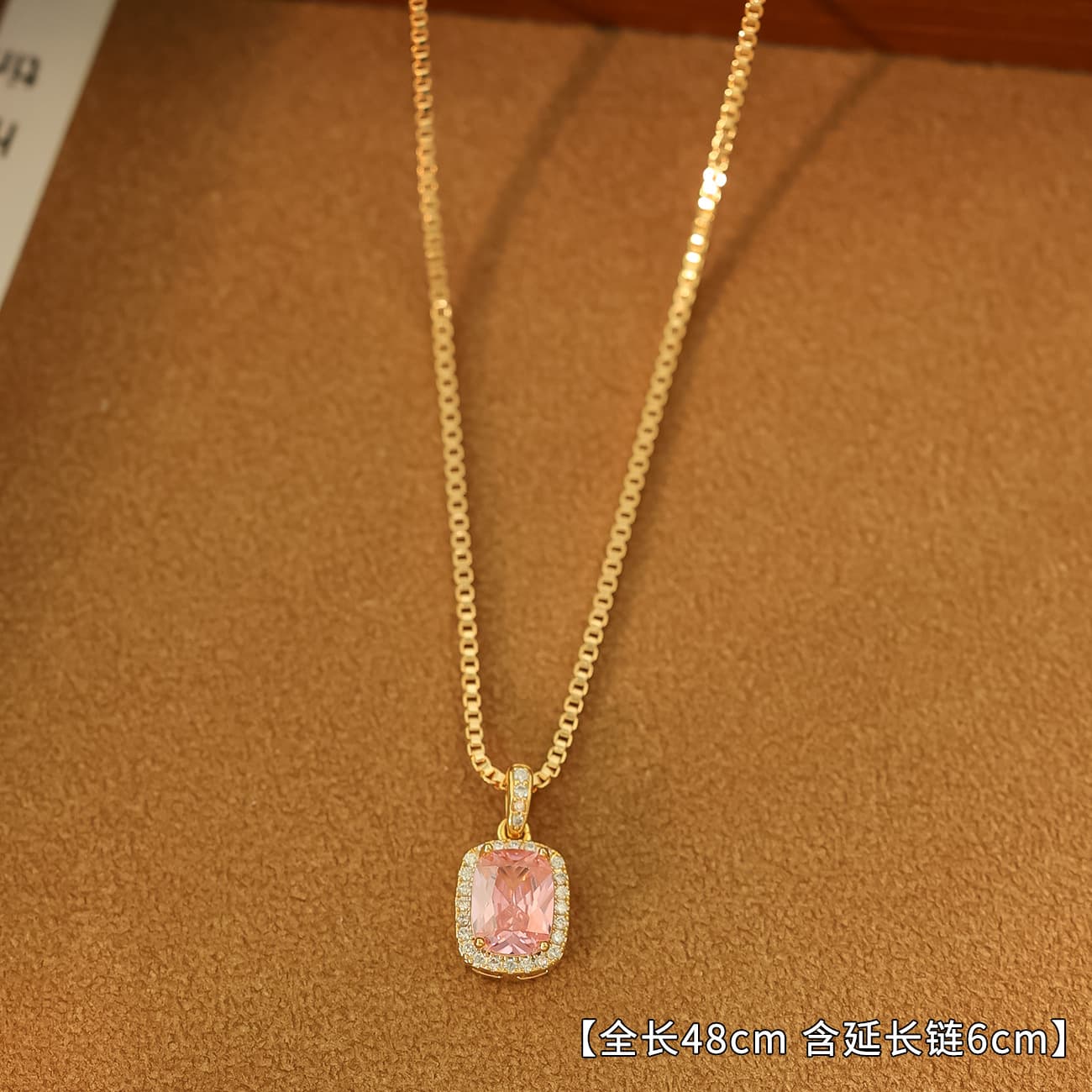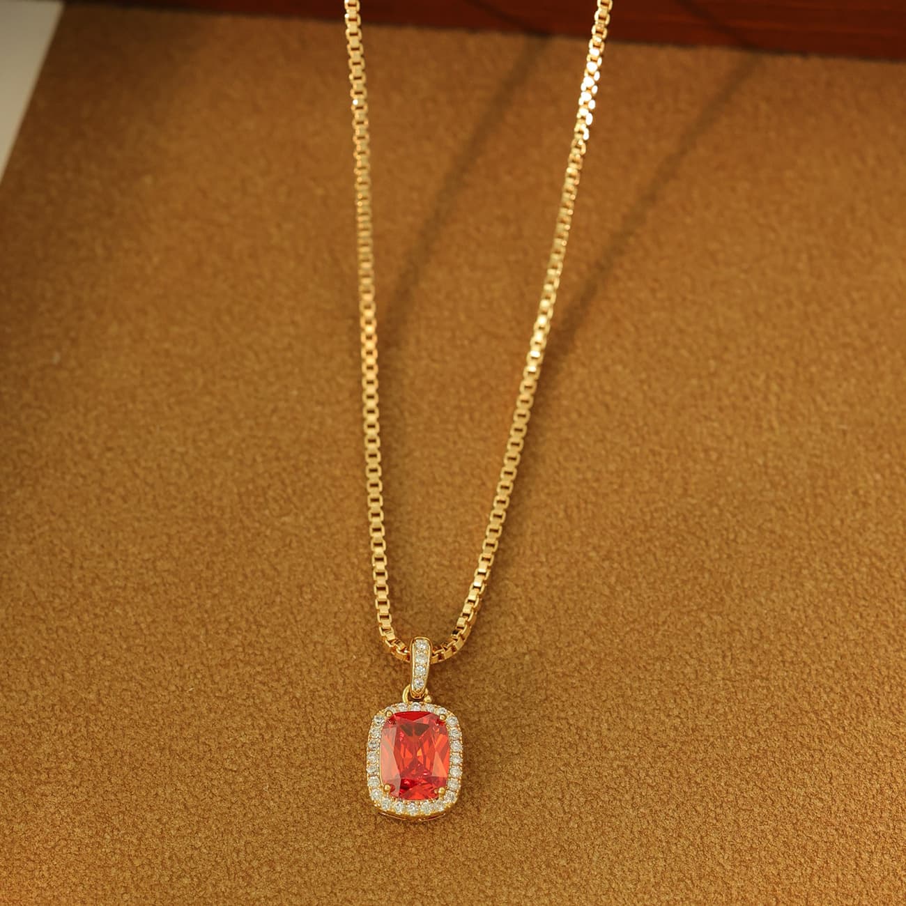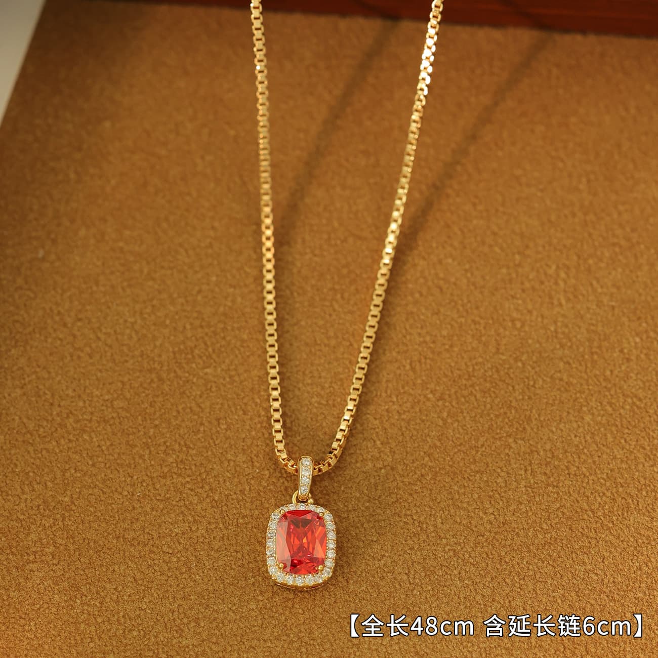 Gold-Plated Zircon Red Corundum Fat Square Necklace