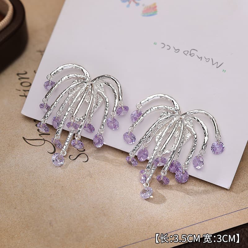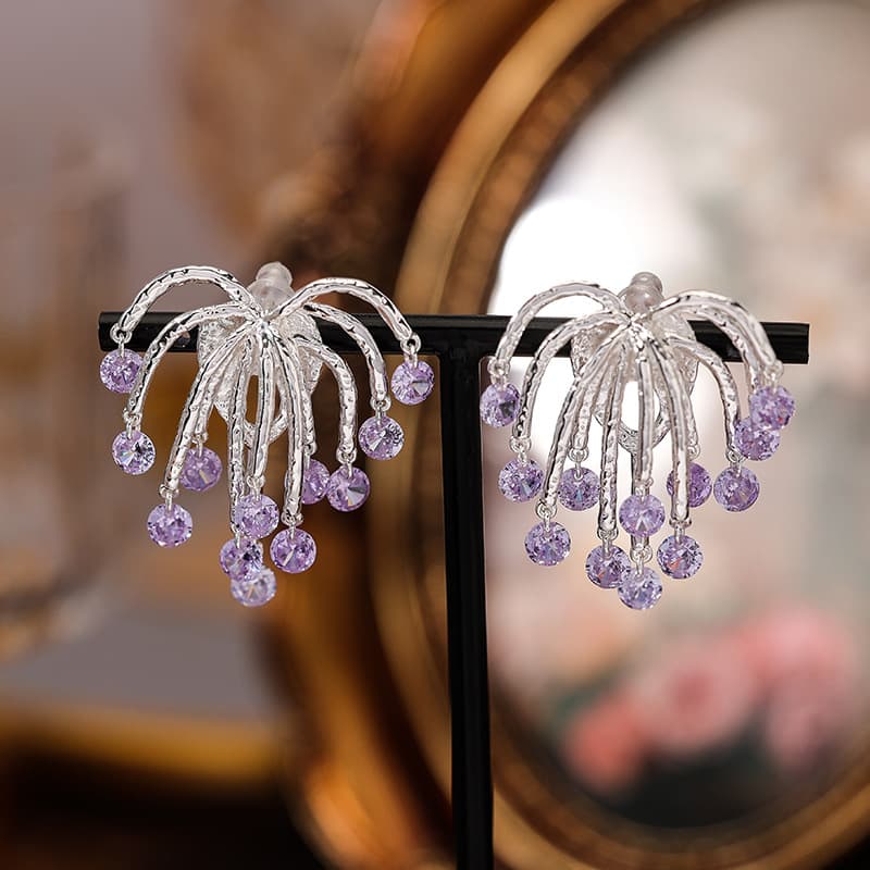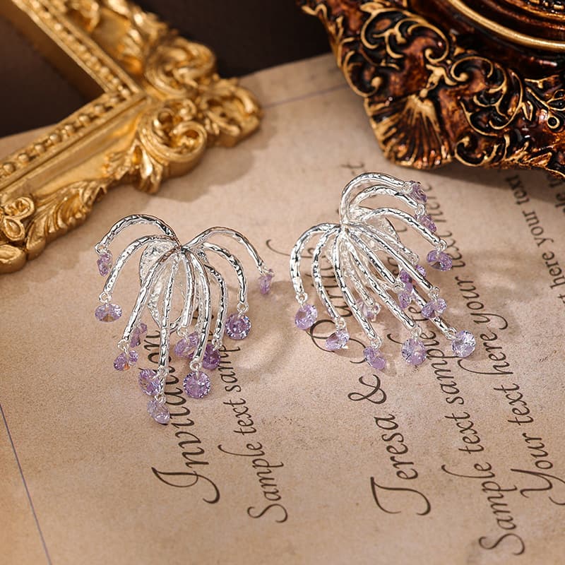Introduce your customers to the captivating "Purple Flame Flowing Zircon Earrings," a stunning addition to any jewelry collection.