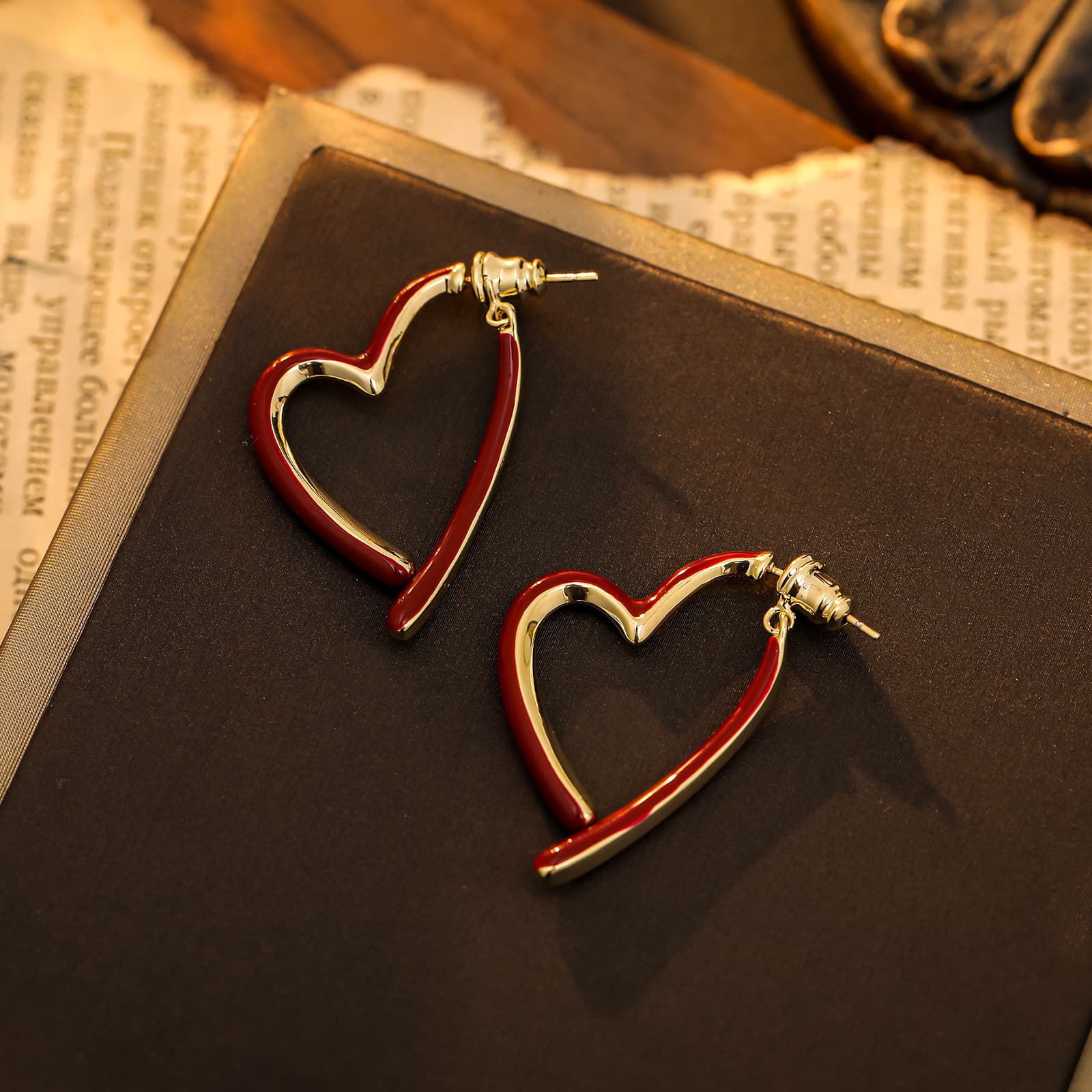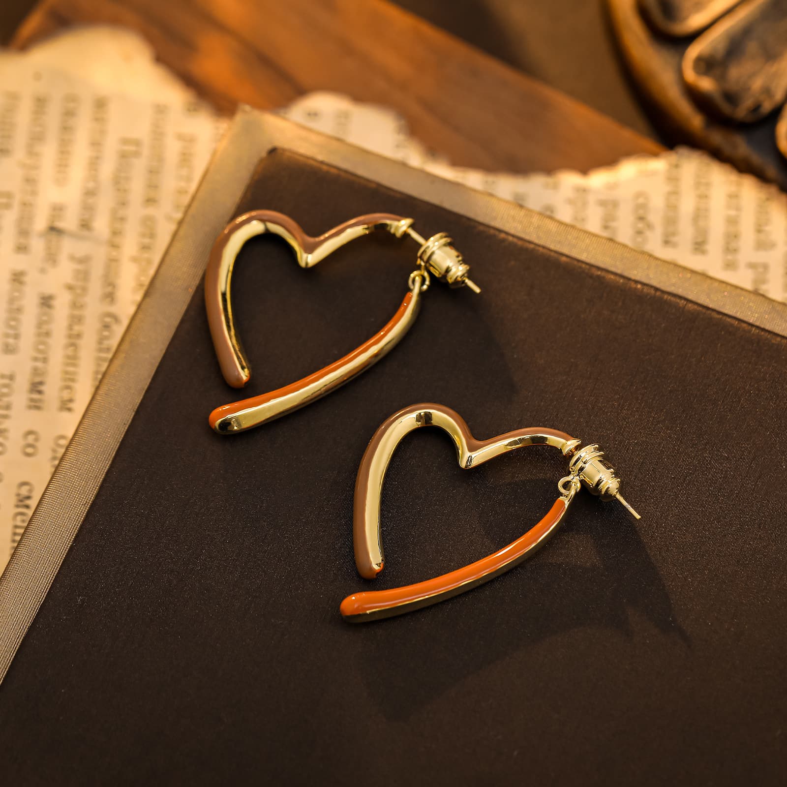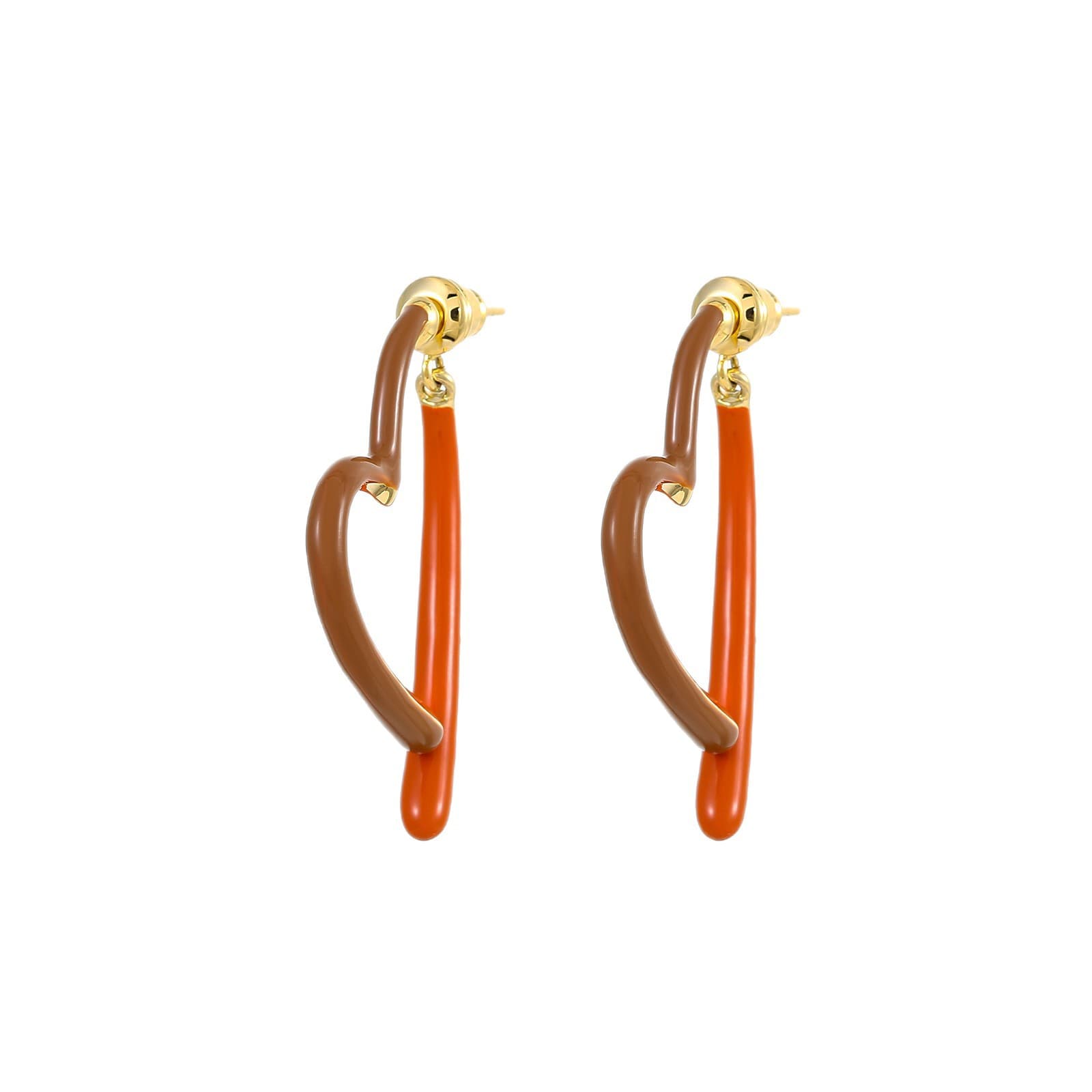 Gold-Plated Maillard Enamel Heart Stud Earrings
