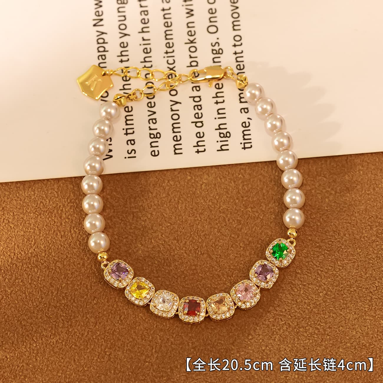 Manta Rose Violet Pearl Bracelet with Colorful Zircon Inlay