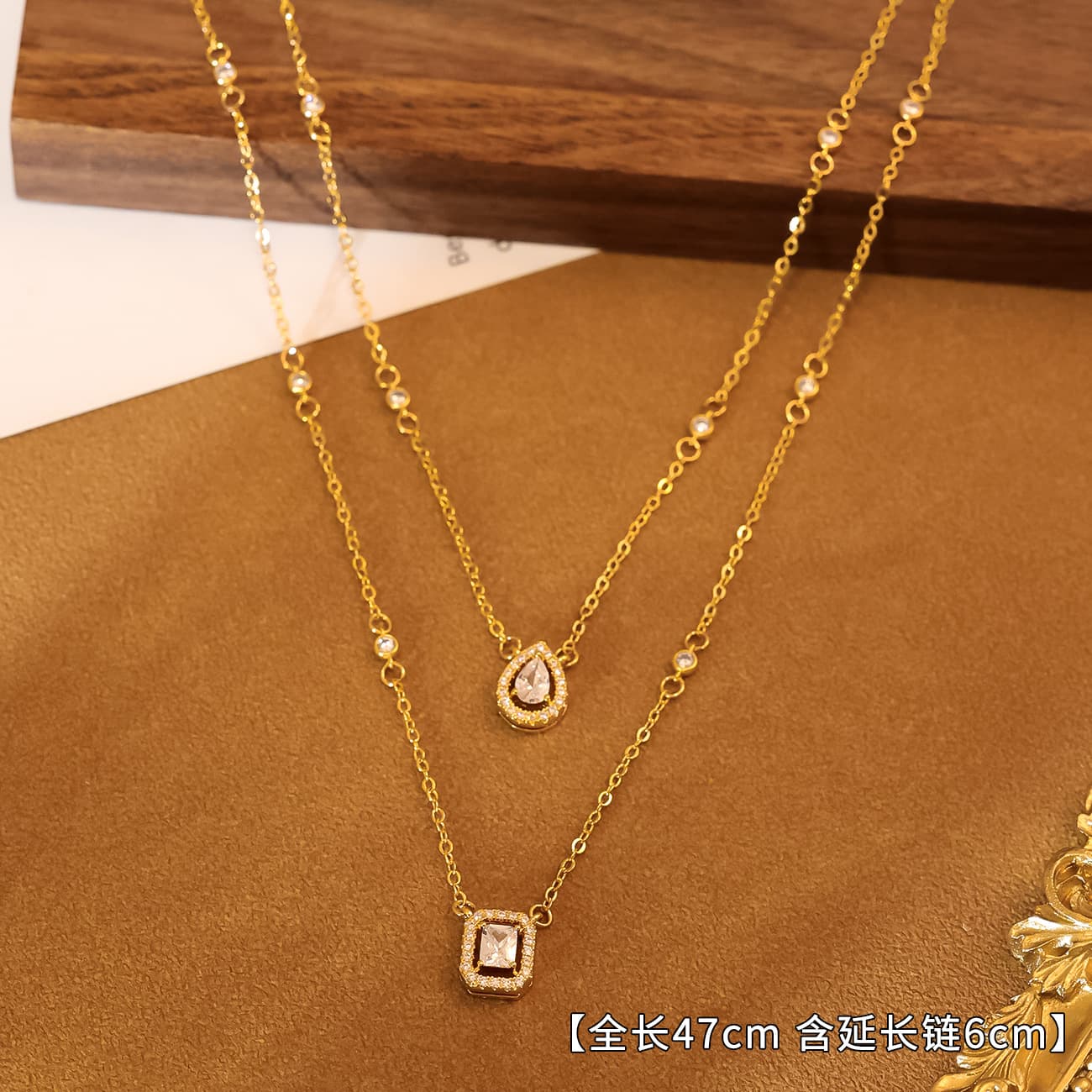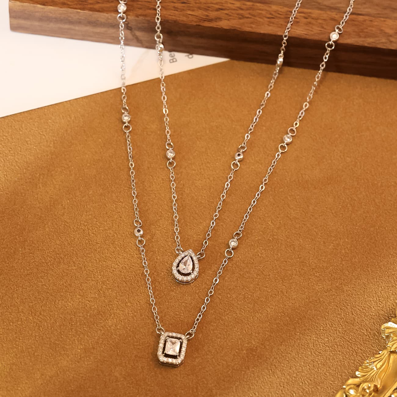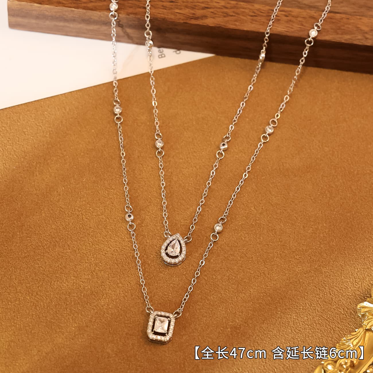 Introduce your customers to the Double-Layer Square Zircon Clavicle Necklace, an exquisite piece designed to captivate.