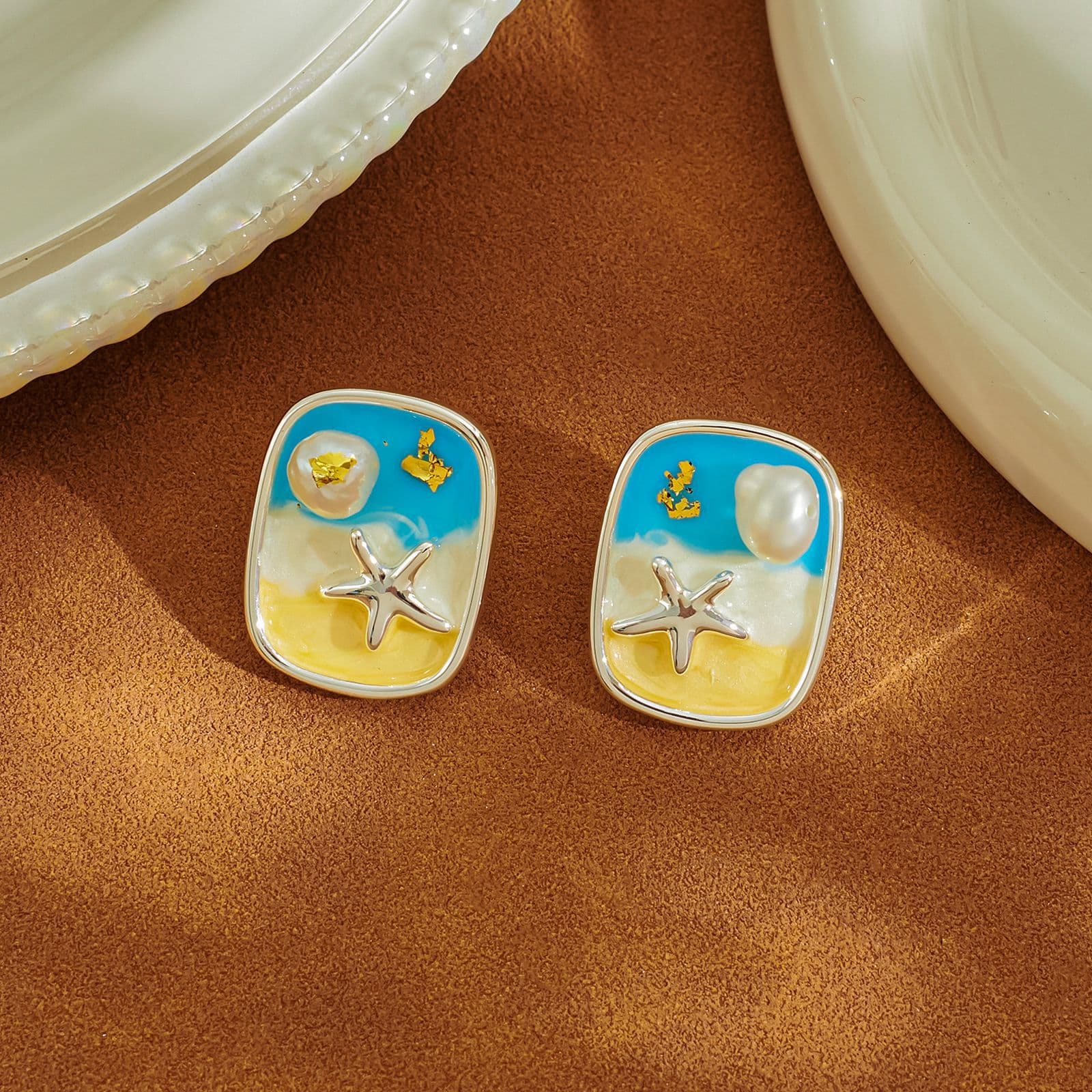 Monet Garden Natural Pearl 925 Silver Retro Oil Painting Earrings