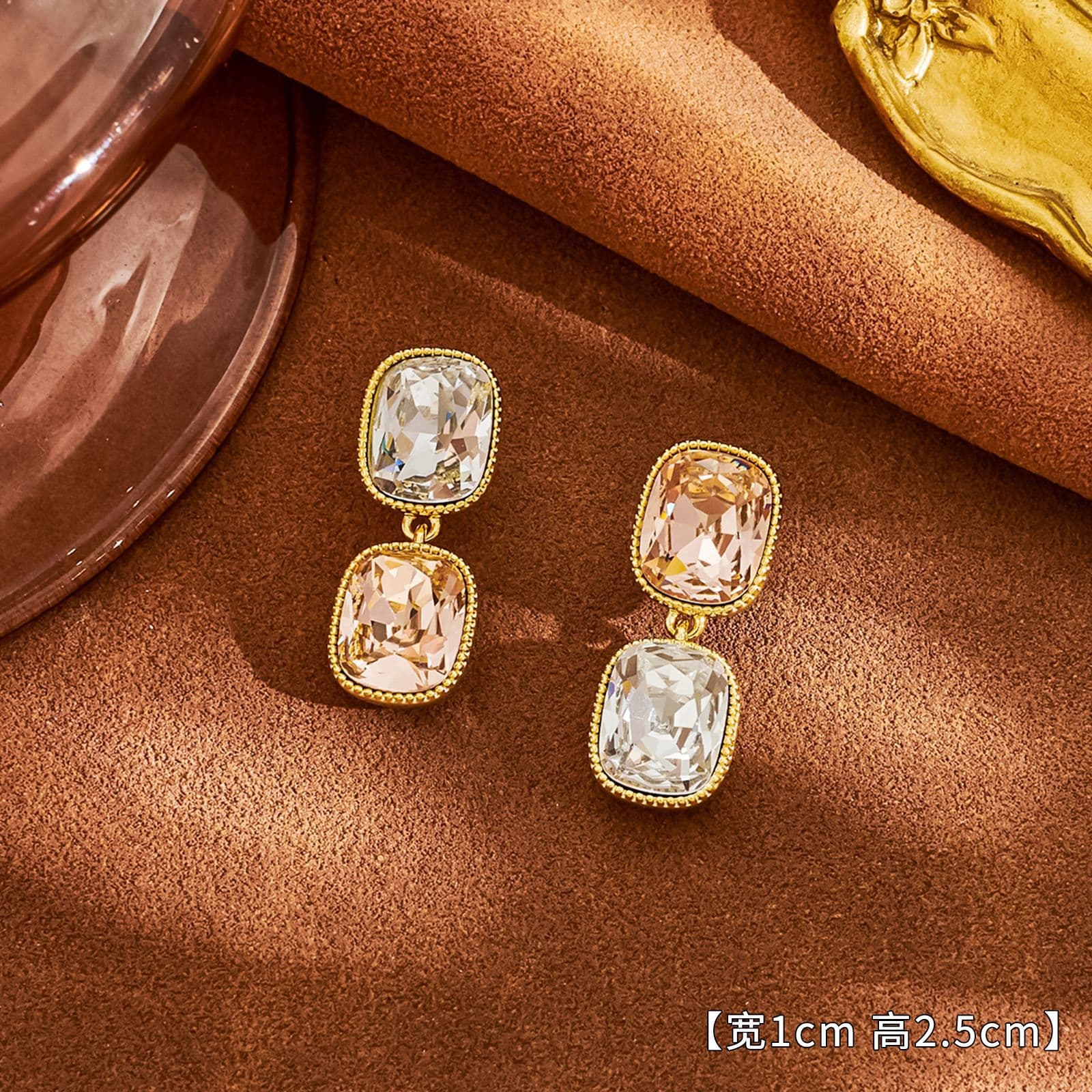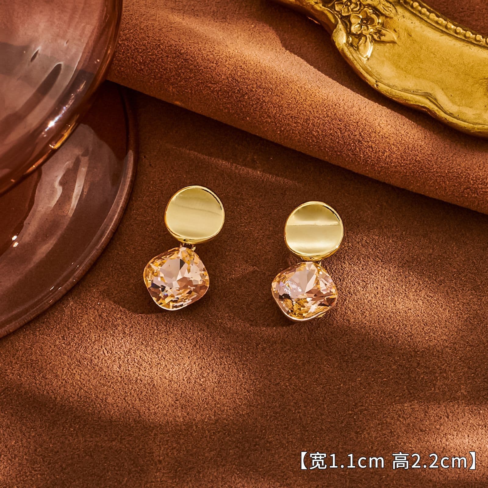 Champagne Brown Zircon Geometric Stud Earrings S925 Pin
