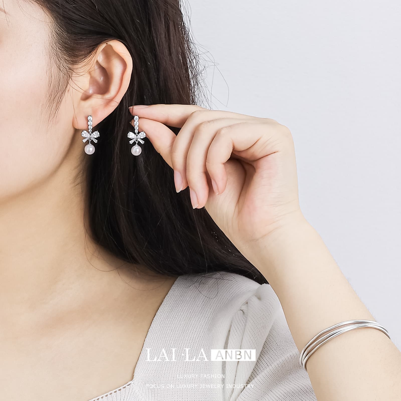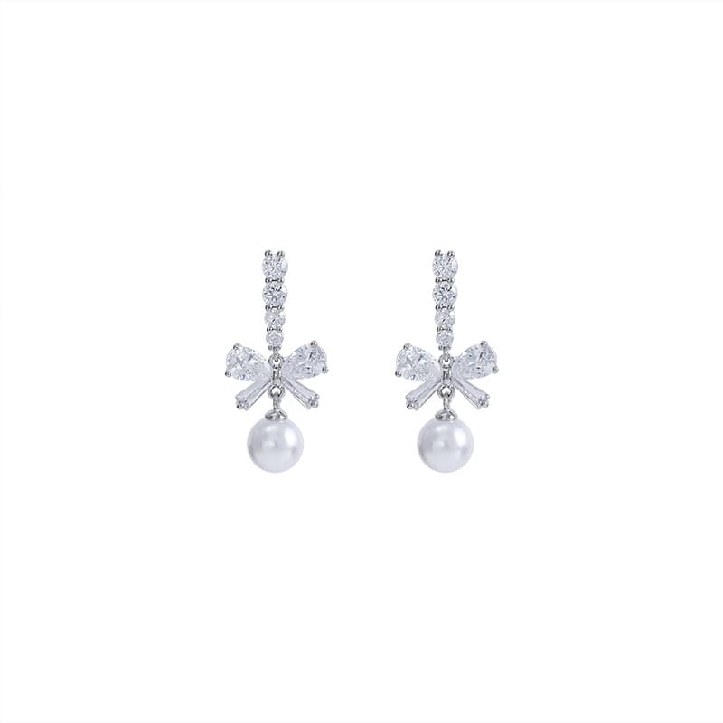 Introduce your customers to our exquisite Bowknot Zircon Pearl 925 Sterling Silver Stud Earrings, a perfect blend of