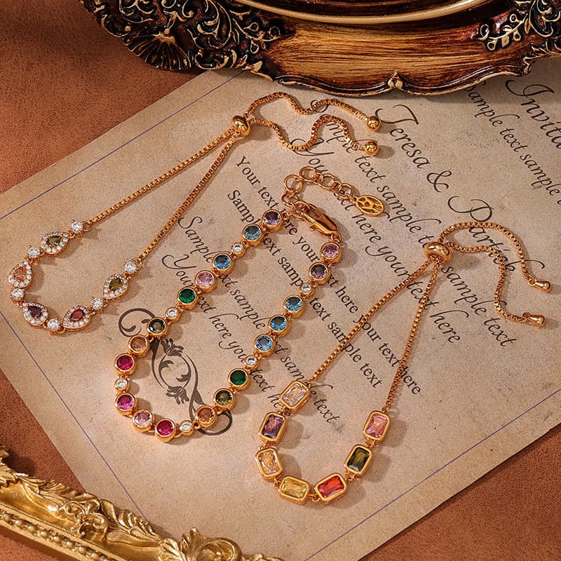 Introduce your customers to the vibrant elegance of our Real Gold Plated Colorful Zircon Geometric Bracelets. These light luxury pieces, featuring eye交貨時間計算器