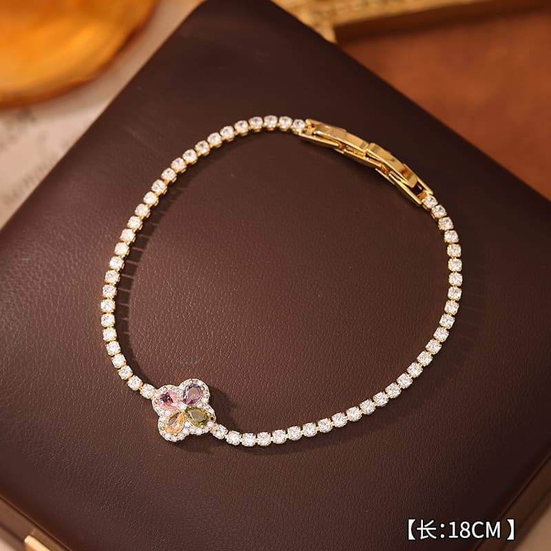 Real Gold Plated Colorful Zircon Geometric Bracelet