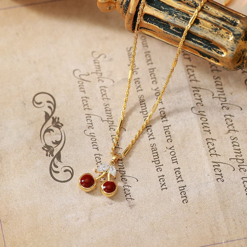 Gold-Plated Micro-Inlaid Red Cherry Double-Layer Necklace